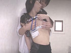 イケメン長身デカチンの会社員がOLに迫られ、給湯室で声抑えて激しく絡み合う